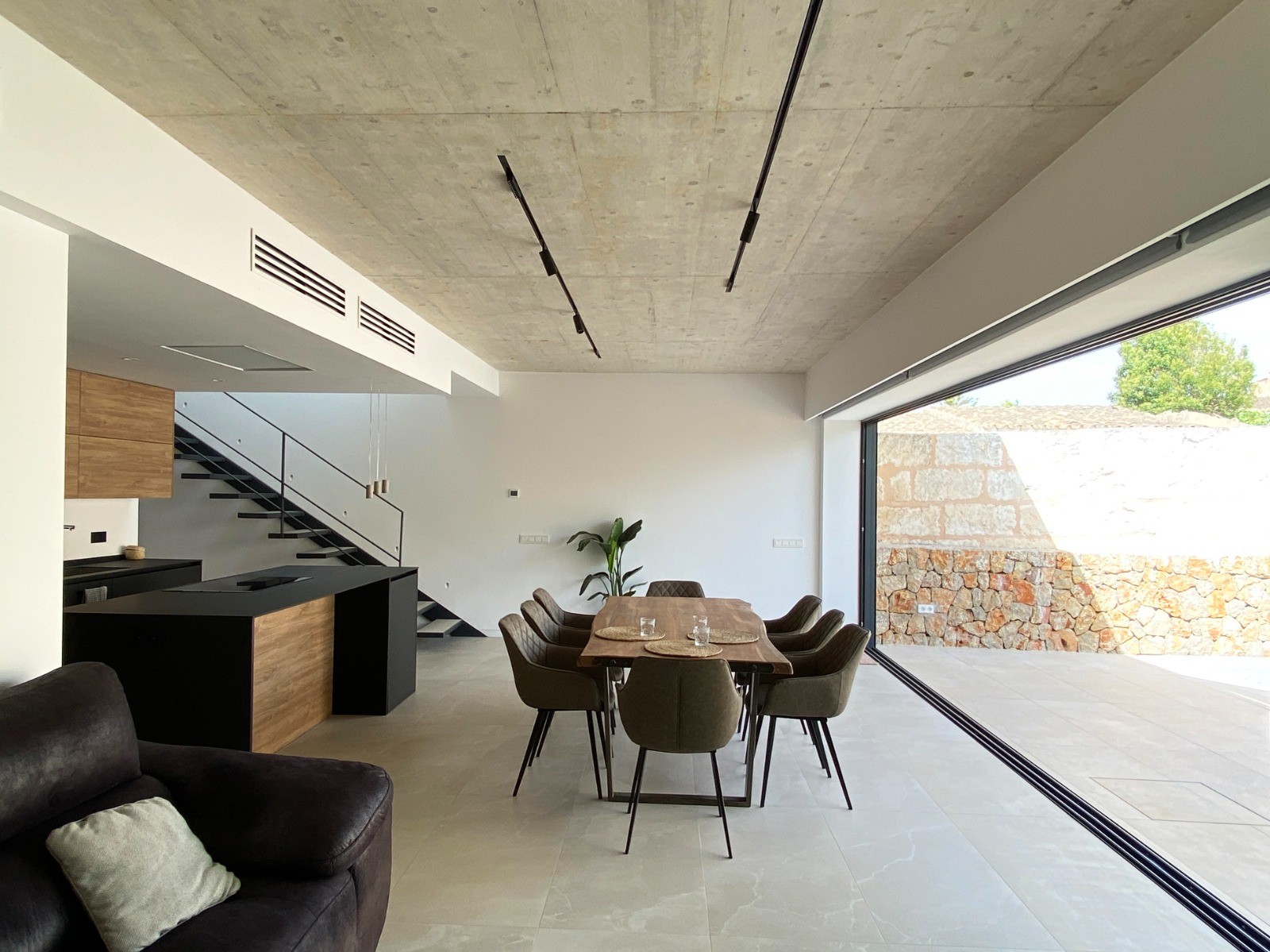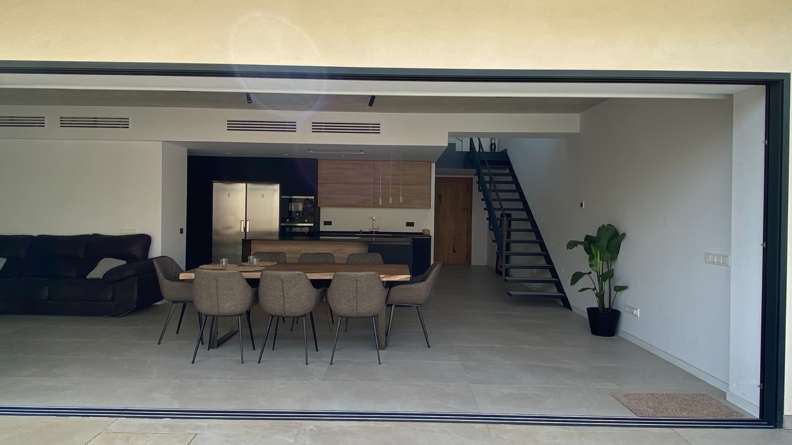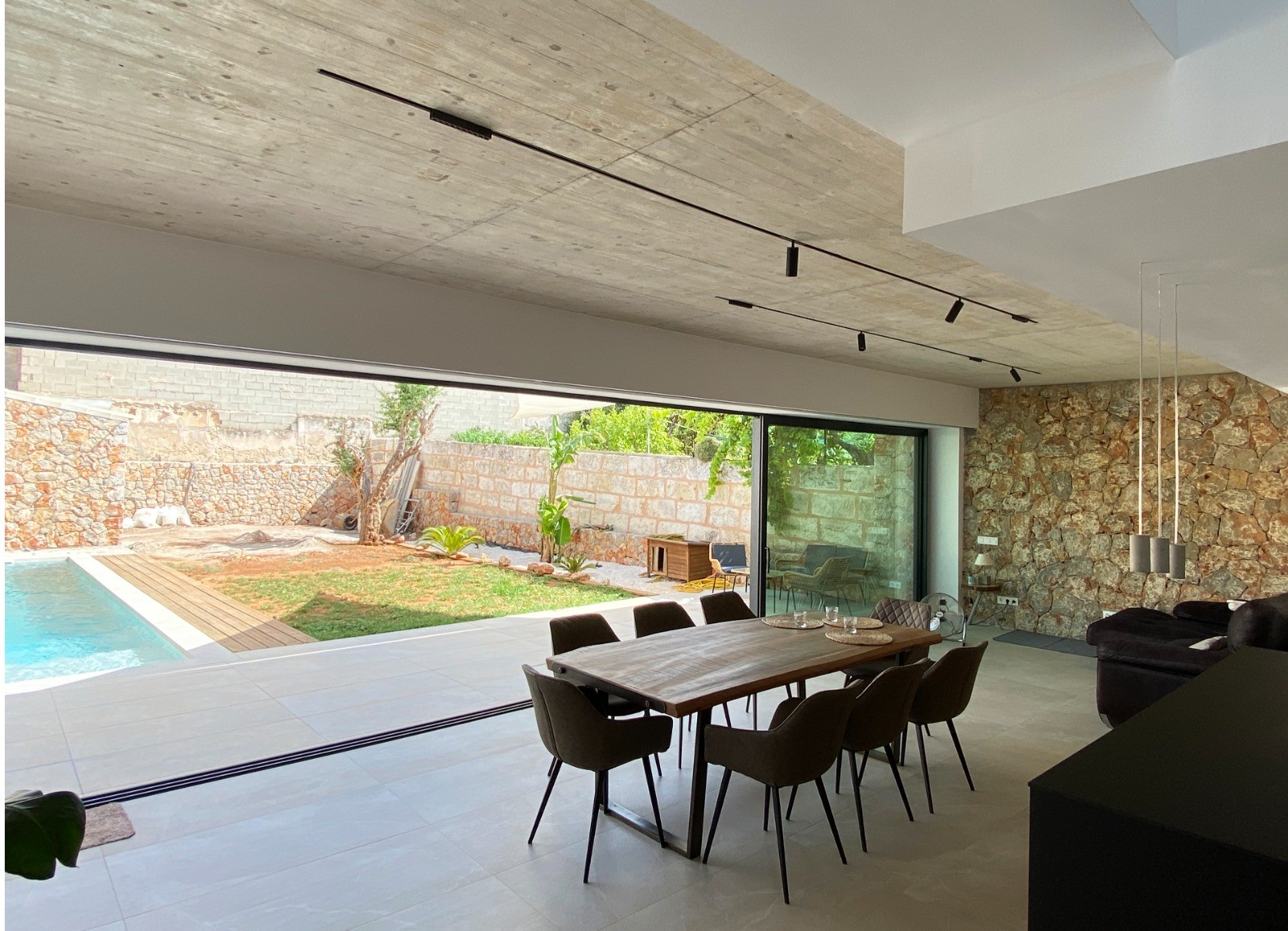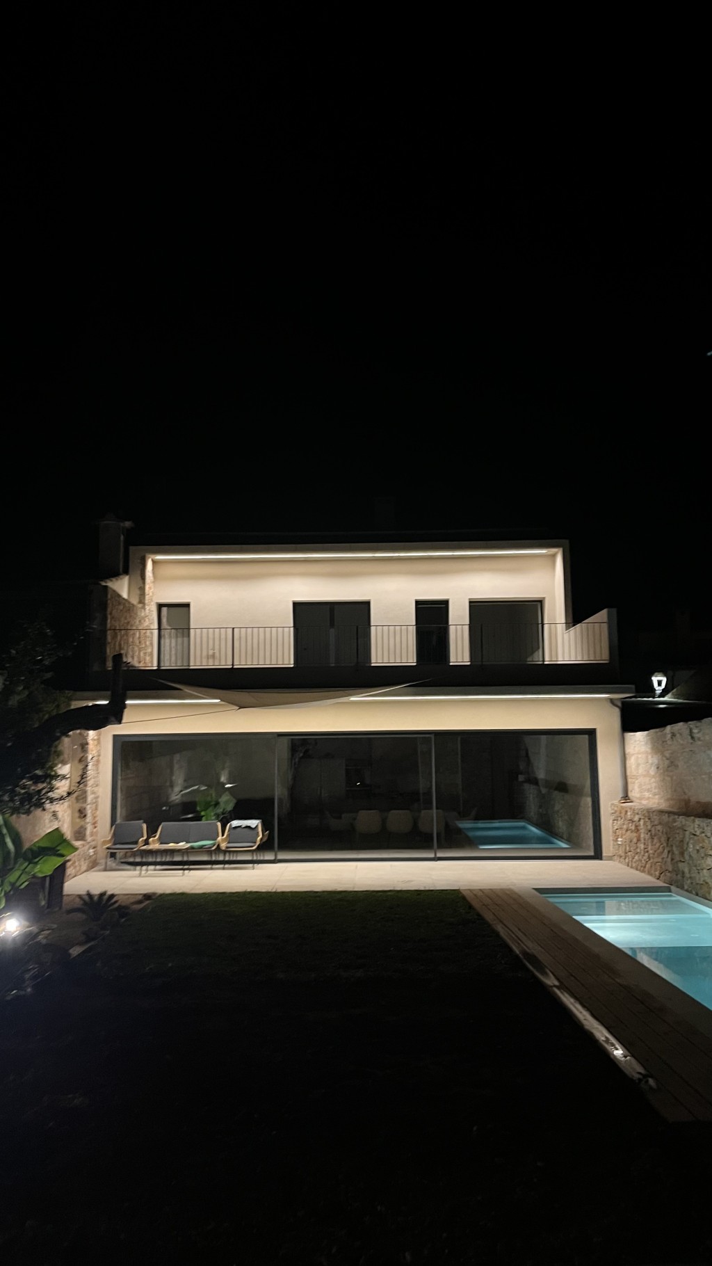 La iluminación ha sido mas compleja ya que se han integrado railes monofásicos con sistema DALI en la losa de hormigón, en la fase de estructura, toda la vivienda se ha diseñado y ejecutado pensado en el máximo confort, sostenibilidad y mínimas preocupaciones para los habitantes de esta.